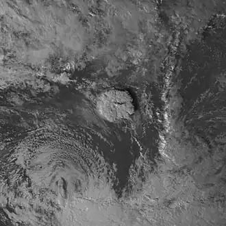 Depois de estar relativamente inativo desde 2014,[2] o vulcão Hunga Tonga entrou em erupção em 20 de dezembro de 2021, enviando partículas para a estratosfera, e uma grande nuvem de cinzas foi vista de Nucualofa, a capital de Tonga, a cerca de 70 km (43 mi) do vulcão.[3] O Centro de Aviso de Cinzas Vulcânicas (VAAC) em Wellington, Nova Zelândia, emitiu um aviso às companhias aéreas.[4] Explosões foram ouvidas até 170 km (110 mi) de distância.[5] Esta erupção inicial terminou às 02h00 do dia 21 de dezembro.[3] A atividade vulcânica continuou e, em 25 de dezembro, a ilha aumentou de tamanho em imagens de satélite.[6] Como a atividade na ilha diminuiu, ela foi declarada inativa em 11 de janeiro de 2022.[7]
