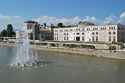 - Edifício doParlamento da Macedônia. A renovação do Parlamento também incluiu a construção de cúpulas sobre o prédio.[48]