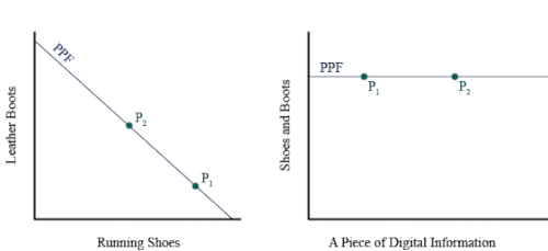 Um argumento econômico liberal contra a escassez artificial é que, na ausência de escassez artificial, empresas e indivíduos criariam ferramentas com base em suas próprias necessidades (demanda). Por exemplo, se uma empresa tivesse uma forte necessidade de um programa de reconhecimento de voz, eles pagariam para que o programa fosse desenvolvido para atender às suas necessidades. O negócio lucraria não com o programa, mas no aumento resultante na eficiência habilitada pelo programa. A abundância subsequente do programa reduziria os custos operacionais para o desenvolvedor, bem como para outras empresas que utilizam o novo programa. Custos mais baixos para as empresas resultam em preços mais baixos na Concorrência do Mercado Livre. Preços mais baixos dos fornecedores também aumentariam os lucros para o desenvolvedor original. Em abundância, as empresas continuariam a pagar para melhorar o programa para melhor atender às suas próprias necessidades e aumentar os lucros. Com o passar do tempo, o negócio original gera um retorno sobre o investimento, e o consumidor final tem acesso a um programa que atenda às suas necessidades melhor do que qualquer desenvolvedor de programa poderia prever. Esta é a razão comum por trás Software de Código aberto.[9]:20