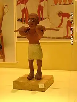 Vários departamentos no governo do Egito Antigo obrigavam trabalhadores da população em geral a trabalhar para o estado. Os trabalhadores eram recrutados para projetos como expedições militares, mineração, exploração de pedreiras, a construção de pirâmides, e outros projetos para o estado. Trabalhadores forçados recebiam um salário, dependendo do seu nível de habilidade para o trabalho e status social. Os trabalhadores recrutados, no entanto, não eram considerados propriedade de outros indivíduos, como os outros escravos, e executavam seus trabalhos como se fossem um dever para com o estado. Conscrito, o trabalho era uma forma de tributação por funcionários do governo e, geralmente, acontecia a nível local por altos funcionários mediante convocação da população pelos líderes locais.[4][5]