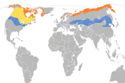 Nidifica nas regiões árcticas e subárcticas a norte do paralelo 60 ºN e inverna em latitudes temperadas.