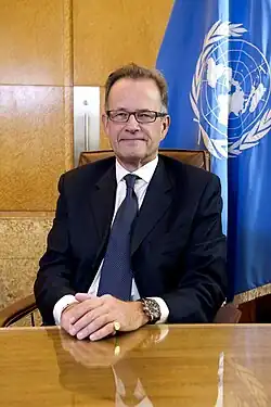 - ↑ Geneva, United Nations Office of. «Where global solutions are shaped for you | UN Family in Geneva | Who's Where in Geneva ?». www.unog.ch (em inglês). Consultado em 27 de fevereiro de 2018