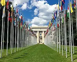 - ↑ Geneva, United Nations Office of. «Where global solutions are shaped for you | UN Family in Geneva | UN System Meetings in Geneva». www.unog.ch (em inglês). Consultado em 27 de fevereiro de 2018