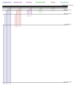 Deixando igual a 1 e fazendo percorrer de 2 até o infinito, as linhas de espectro conhecidas como série de Lyman convergem em 91nm. Da mesma maneira: