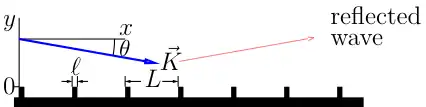 Para ranhuras estreitas com grande período , as ranhuras simplesmente bloqueiam parte da frente de onda. Portanto, isso pode ser interpretado em termos da difração de Fresnel[2][3] da onda de de Broglie, ou o efeito Zeno;[4] tal interpretação leva à estimativa da refletividade