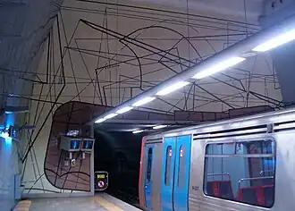A estação apresenta uma nave central onde se encontra o átrio central, e por baixo as plataformas. Duas naves laterais perpendiculares à primeira dão acesso às quatro saídas, duas para Este e as outras duas para Oeste. Os pavimentos e acabamentos das paredes são em pedra calcária, azulejo e mosaico porcelânico. Quanto à intervenção plástica de Ana Vidigal, pode-se dizer que pretende sublinhar o tema das viagens; a ideia é passada para os passageiros através da pintura em moldes de costureira modista (em linhas multicolores, tal como publicados em revistas de moda, nomeadamente a alemã Burda) e que pretendem simbolizar também o emaranhado da malha urbana. Estes painéis estão colocados nos tímpanos (paredes dos topos da estação) e nas paredes em frente às escadas rolantes das quatro entradas, de forma a que os passageiros as denotem facilmente.[1][2]