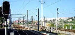 Esta interface apresenta quatro vias de circulação, numeradas de I a IV, com comprimentos de, respetivamente 330, 330, 299, e 305 m de extensão, todas acessíveis por plataformas de 303 m de comprimento e 90 cm de altura; todas estas vias estão eletrificadas em toda a sua extensão.[3]