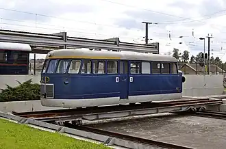 automotora no Núcleo Museológico de Lousado em 2014, vendo-se à esquerda as plataformas da estação