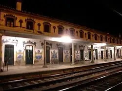 O edifício de passageiros situa-se do lado norte da via (lado esquerdo do sentido ascendente, a Salamanca).[10][11] Os edifícios da estação estão decorados com painéis de azulejos, fornecidos pela Fábrica de Cerâmica da Viúva Lamego.[12]
