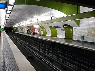 As plataformas da linha 5 são decoradas no estilo "Andreu-Motte": os cenários são laranjas, mas as telhas são brancas e biseladas. Os quadros publicitários são metálicos e o nome da estação é indicada em placas esmaltadas, em fonte Parisine.