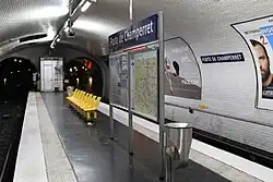 Por causa de seu antigo status de terminal, a estação tem duas semi-estações separadas por um pé-direito central (um para cada direção), totalmente idênticas: elas são compostas de uma plataforma central rodeada de duas vias[3] e a abóbada é elíptica e inteiramente revestida de telhas em cerâmica brancas biseladas clássicas, também presentes nos tímpanos. A iluminação é feita por tubos e projetores. Os quadros publicitários são metálicos e o nome da estação é inscrito em placas esmaltadas, em letras maiúsculas nos pés-direitos e em fonte Parisine nas plataformas. Os assentos são do estilo "Motte" de cor amarela.