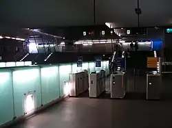 Esta estação conta com seis acessos pedonais e um elevador entre o átrio e a superfície:[1][2]