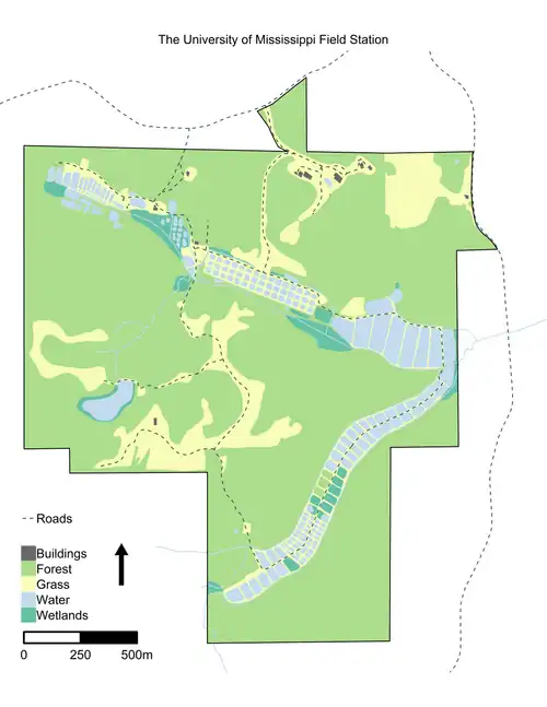 - ↑ a b c d «University of Mississippi Field Station». University of Mississippi. Consultado em 11 de maio de 2014