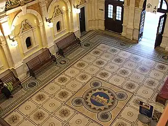 O edifício contém também um chão de mosaico com quase 750.000 peças e um friso de porcelana. A plataforma principal da estação é a mais comprida do país, tendo um quilómetro de comprimento.