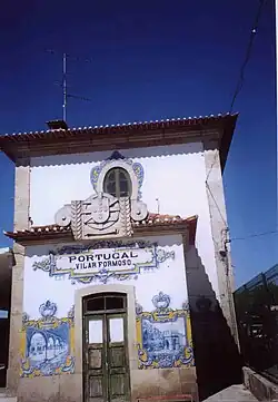 O edifício de passageiros situa-se do lado norte da via (lado esquerdo do sentido ascendente, a Salamanca).[10][11] Os edifícios da estação estão decorados com painéis de azulejos, fornecidos pela Fábrica de Cerâmica da Viúva Lamego.[12]