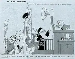 A inimizade do Correio datava da campanha eleitoral de 1921–1922, quando ele publicou cartas falsas, de conteúdo injurioso aos militares, atribuídas a Bernardes. As cartas criaram antipatia popular ao candidato e acentuaram o descontentamento militar.[200][201] Este episódio é apontado na historiografia como a origem da nova Lei de Imprensa de autoria do senador Adolfo Gordo, promulgada em outubro de 1923.[201] Os opositores consideravam um absurdo debater a proposta em pleno estado de sítio, com a imprensa sob censura, enquanto seus defensores argumentavam que ainda havia liberdade para discussão.[202] Para o Correio da Manhã, reaparecia o delito de opinião, e para O Imparcial, a proposta era "a morte da liberdade de opinião no Brasil".[203] A lei fortalecia os instrumentos legais de controle da imprensa — os crimes de injúria e calúnia.[105]