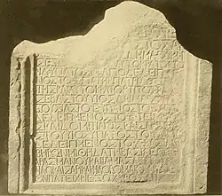 A inscrição é datada em 75.[4][5] O topo da estela está perdido. Segundo o professor David Braund, o texto perdido estava em latim ou armázico (desenvolvido do aramaico).[6] Cyril Toumanoff identifica Amazaspo com o rei ibério Amazaspo I (r. 106–116), embora possa ser o príncipe real Amazaspo,[7] filho de Farasmanes I, que é conhecido do Epigrama de Amazaspo encontrado em Roma.[3][8]