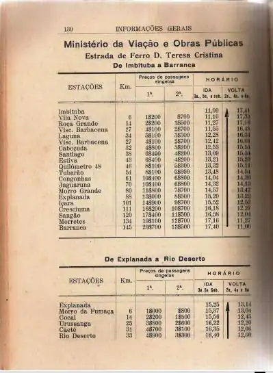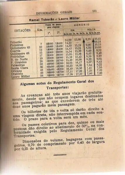 Na página 371 do mesmo guia consta, referente ao município de Orleans, em informações para viajantes, meios de transporte: cavalos - aluguel 5$000 (cinco mil-reis) por dia.
