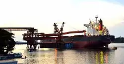 Após o processo de extração e beneficiamento, a bauxita é transportada da mina até o porto, ao longo de uma ferrovia de 28 km. Na operação, são utilizados trens de 46 vagões. [9]