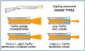 - ↑ «Why choke a barrel?». PyramydAir.com. Consultado em 27 de julho de 2020