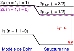 Esta estrutura pode ser explicada através da física quântica; devido a quebra parcial da degenerescência de um nível de energia do modelo de Bohr em resultado a três tipos de correções: