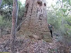 A madeira é escassa como recurso madeireiro,[16] pois grande parte de sua área de distribuição está agora em reservas de conservação.[17] Mesmo em florestas onde a extração é permitida, reservas informais ao redor de riachos excluem a árvore, que predomina nas partes mais úmidas da paisagem.[3] Sua madeira está entre as mais resistentes ao fogo no mundo.[2]