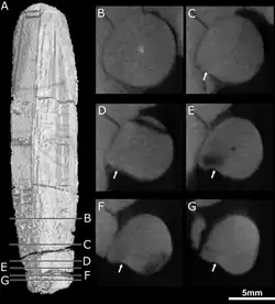 - ↑ Sues, H.-D. (1996). «A reptilian tooth with apparent venom canals from the Chinle Group (Upper Triassic) of Arizona». Journal of Vertebrate Paleontology. 16 (3): 571–572. doi:10.1080/02724634.1996.10011340