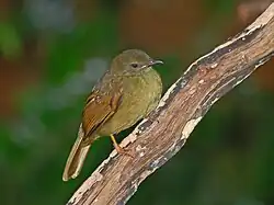 - ↑ a b c BirdLife International (2018). «Eurillas virens». Lista Vermelha de Espécies Ameaçadas. 2018: e.T22712766A131965317. doi:10.2305/IUCN.UK.2018-2.RLTS.T22712766A131965317.en
