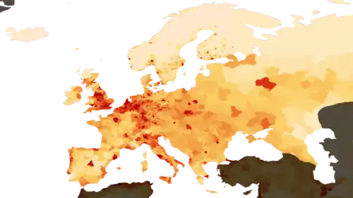 No continente europeu não existem regiões extensas que apresentem vazios demográficos, como os que encontramos em desertos, áreas florestais ou de altas latitudes. No entanto, a população europeia não apresenta distribuição uniforme, sendo bastante densa próxima às grandes cidades e nas partes industrializadas do ocidente europeu (vale do Ruhr, Amsterdã, Londres, norte da Itália). Mais ao norte (península Escandinava), devido às baixas temperaturas, e nas áreas montanhosas do sul (Alpes), o povoamento apresenta-se mais esparso.[4]