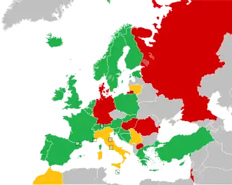 | 7 | Bósnia e Herzegovina, Estónia, Eslovénia, Países Baixos, Polónia, Suíça, Turquia | |