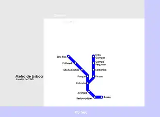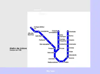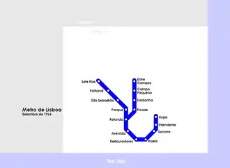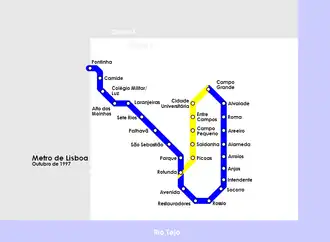 Estações: Sete Rios, Palhavã, São Sebastião, Parque, Rotunda, Avenida, Restauradores, Picoas, Saldanha, Campo Pequeno e Entre Campos | ||||
