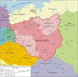 - A Polónia surge como uma das nações durante o século X, liderado por vários governantes da dinastia Piast que converteram os poloneses ao cristianismo.