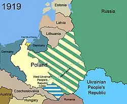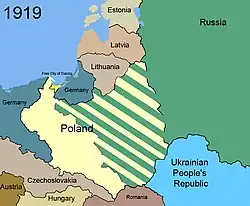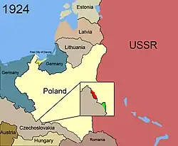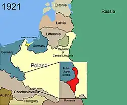 - Após a Primeira Guerra Mundial, uma insurreição eclodiu na Polônia e prosseguiu até a assinatura do Tratado de Versalhes em junho de 1919. O tratado recria um Estado polonês, recebendo do Império Alemão os seguintes territórios: