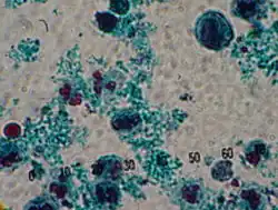 - ↑ «Exame Parasitológico de Fezes - Helmintoses e Protozooses - Diagnóstico Laboratorial - Atlas de Parasitologia Clínica e Doenças Infecciosas Associadas ao Sistema Digestivo». ufsc.br. Consultado em 25 de dezembro de 2016