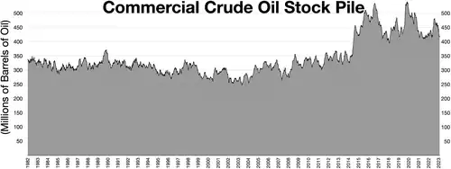 A produção de petróleo dos EUA quase dobrou em relação aos níveis de 2008, devido a melhorias substanciais na tecnologia de xisto de "fracking" em resposta a preços recordes do petróleo. A alta constante da produção adicional, em sua maioria proveniente de Dakota do Norte, Oeste do Texas, Novo México, Oklahoma e vários outros estados norte-americanos, acabou levando a uma queda nas necessidades de importação de petróleo dos EUA e a um volume recorde de estoques mundiais de petróleo armazenados.[8]