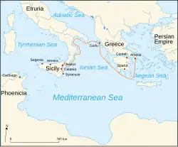 - ↑ Tucídides, História da Guerra do Peloponeso, 6.9