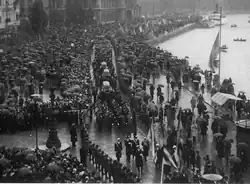 - ↑ Sörlin, Sverker (1999). "O sepultamento de um era: a volta para casa de Andrée como um evento nacional", n'O Centenário da Expedição ao Pólo Norte de S.A. Andrée: Conclusões de uma Conferência Sobre S.A. Andrée e a Agenda de Pesquisas Científicas Sociais nas Regiões Polares. ed. Urban Wråkberg. Estocolmo: Centro de História da Ciência, Academia Real das Ciências da Suécia