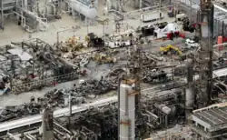 Uma área estimada em 19.000 m² da refinaria foi gravemente queimada pelo incêndio que se seguiu à explosão violenta, danificando equipamentos da refinaria avaliados em milhões de dólares.[71] A onda de pressão foi tão poderosa que quebrou janelas fora do complexo a até 3⁄4 milha (1,2 km) de distância.[72]