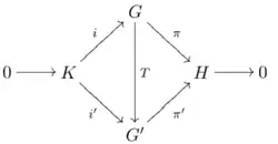 são equivalentes (ou congruentes) se existe um isomorfismo de grupos tornando comutativo o diagrama da Figura 1. Na verdade, é suficiente ter um homomorfismo de grupo; devido à comutatividade assumida do diagrama, a aplicação é forçada a ser um isomorfismo pelo lema dos cinco curto.