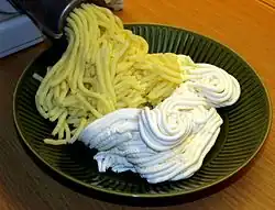 Extrusão de alimentos é uma forma de extrusão utilizada no processamento de alimentos. É um processo pelo qual um conjunto de ingredientes misturados são forçados através de uma abertura numa placa perfurada ou troquel com um desenho específico para o alimento, e é então cortada para um tamanho específico por lâminas. A máquina que força a mistura através da fieira é uma extrusora, e a mistura é conhecida como o extrudado. A extrusora consiste num eixo de grande força de rotação montado dentro de um tambor estacionário, ao fim do qual está o troquel.[1]