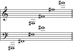 No temperamento igual, o fá sustenido que fica logo acima do dó central do piano (F♯4) tem a freqüência aproximada de 370 Hz[1]. Tem dois enarmônicos, mi dobrado sustenido (E♯♯)[1][2] e sol bemol (G♭)[1][2].