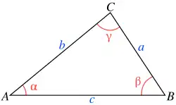 Cada uma destas identidades utilizam todas as seis partes do triângulo — os três ângulos e os comprimentos dos três lados.