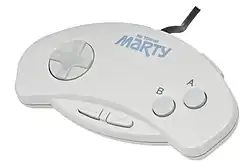 A conector do controle é o DB9, conhecido como "Atari Type" no Japão porque é basicamente igual ao conector do Atari 2600. Os botões Start e Selcet do controle do Marty eram o equivalente de apertar Cima e Baixo, ou Esquerda e Direita ao mesmo tempo. Um controle de seis botões da Fujitsu estava disponível para uso no jogo Street Fighter II da Capcom. A Capcom também lançou um adaptador para seu controle CPS Fighter que o tornava compatível com o FM Towns/Marty assim como o Sharp X68000.[10]