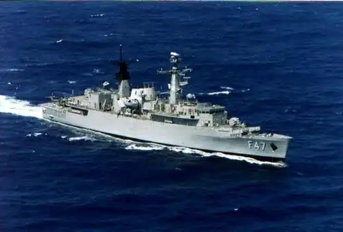 Construído pelo estaleiro inglês Yarrow Shipbuilders Ltd., em Scotstoun, Glasgow (Escócia), foi lançado ao mar em dezembro de 1978. Serviu a Marinha inglesa no período 15 de maio de 1981 a 30 de agosto de 1996. O navio de guerra participou da Guerra das Malvinas.[3]