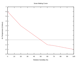A produção de neve requer temperaturas baixas. A temperatura limite para a produção de neve aumenta à medida que a umidade diminui. A técnica da temperatura de bulbo úmido é usada como métrica, pois leva em conta a temperatura do ar e a umidade relativa. A temperatura do bulbo deve ser sempre inferior à temperatura externa. Quanto mais úmido o ar, menos umidade ele pode absorver. Quanto maior a umidade atmosférica, mais frio deve estar para transformar as pequenas gotas de água em cristais de neve.