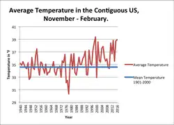 - ↑ a b CMB.Contact@noaa.gov. «Climate at a Glance | National Centers for Environmental Information (NCEI)». www.ncdc.noaa.gov (em inglês). Consultado em 4 de março de 2018