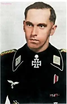 - ↑ Scherzer, Veit (2007). Die Ritterkreuzträger 1939–1945. Die Inhaber des Ritterkreuzes des Eisernen Kreuzes 1939 von Heer, Luftwaffe, Kriegsmarine, Waffen-SS, Volkssturm sowie mit Deutschland verbündeter Streitkräfte nach den Unterlagen des Bundesarchives [Os portadores da Cruz do Cavaleiro 1939-1945. Os portadores da Cruz de Cavaleiro da Cruz de Ferro de 1939 do Exército, Aeronáutica, Marinha, Waffen-SS, Volkssturm e forças armadas aliadas da Alemanha, de acordo com os documentos do Arquivo Federal] (em alemão) 2ª ed. Ranis/Jena: Scherzers Militaer-Verlag. p. 668. ISBN 978-3-938845-17-2. OCLC 213394371