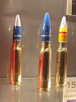 - ↑ a b Anthony G Williams. «An introduction to collecting 20 mm cannon cartridges». quarryhs.co.uk. Consultado em 25 de novembro de 2020
