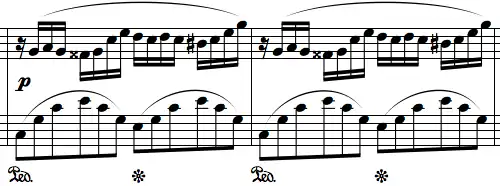 Esta peça possui muitos ritmos alternados (a mão direita toca semicolcheias enquanto a esquerda, tercinas), uma linha melódica em movimento ininterrupto e compasso binário. O tempo, na abertura, é allegro agitato e muda para largo e, posteriormente, moderato cantabile, quando o tom se torna ré bemol maior, o equivalente harmônico da escala de dó sustenido maior que é paralela à de dó sustenido menor. A peça, então, muda para presto (embora algumas versões incorporem à partitura uma coda que faz repetir o tempo inicial) onde torna-se dó sustenido menor como no começo e acaba em um desfecho misterioso e silencioso, na qual a mão esquerda toca novamente as primeiras notas da seção central, e a direita continua a tocar as semicolcheias, até o acorde ascendente de dó sustenido maior que marca o fim.