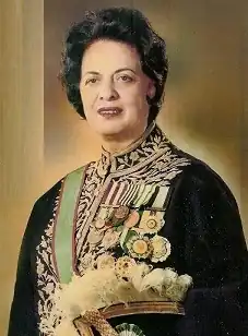 - Uma fotografia de Farrokhroo Pārsāy em conversações com Amir-Abbās Hoveydā.